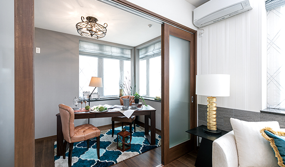 ワークスペースや趣味の空間などとしてニーズの高いDEN(書斎)。扉を閉めれば、集中できる個室・半個室空間として利用可能です。また、リビングダイニングに隣接したプランでは、扉を開放することで1フロアに広大なスペースを創出します。