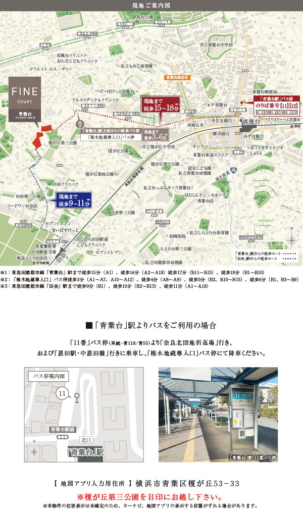 東急田園都市線急行停車駅「青葉台」駅徒歩15分~18分。
